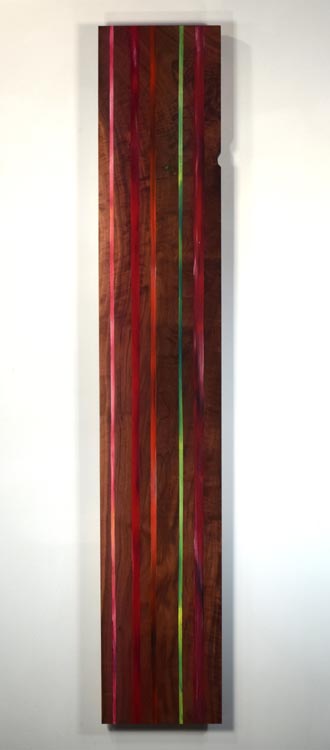 After completing April 2015a (note: all these titles are place holders, I'll create something more personal in the future but just didn't want to deal with it immediately) I decided to make an complete series of stripes on board because I really liked the interaction of the vertical colors with the wood grain as well as the opportunity to create interesting relationships between the different stripes. In living with these in my own space for a while I've also found it very interesting how they all work with each other, that the vertical stripes have an additive affect and effect, but that if one of them is hung horizontally it starts to cancel the others out.